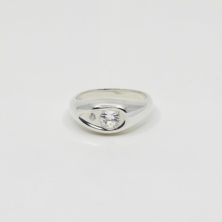 Goshenite and Moissanite Ring